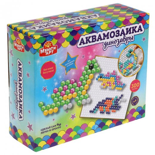 Купить Аквамозаику МультиАрт Динозавры 300 бусин в Новосибирске Вы можете в магазине настольных и развивающих игр "Игры Почемучек"