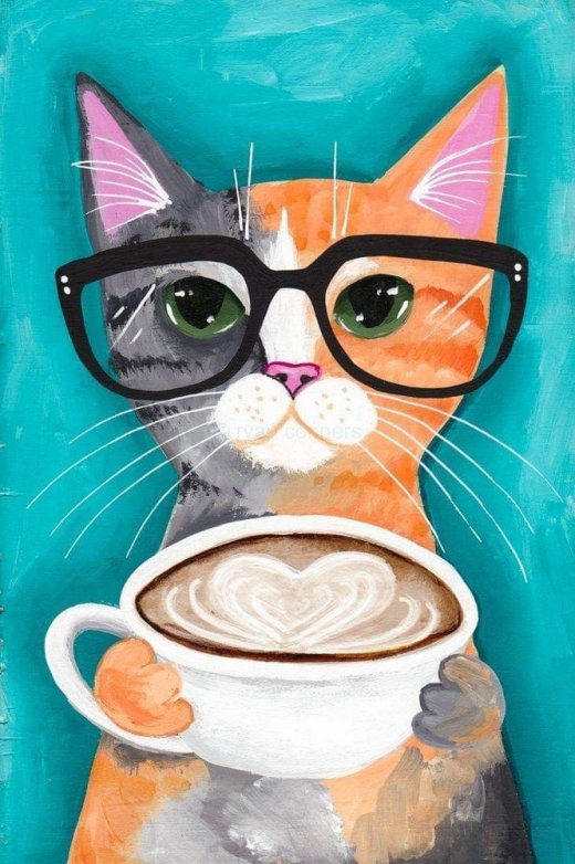 - Алмазная мозаика Кот с чашкой кофе 15 х20 см
