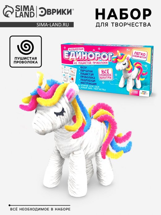 Создавайте волшебного единорога своими руками! Набор для творчества из пушистой проволоки — это увлекательное занятие, развивающее фантазию, моторику и усидчивость. Прекрасный подарок для детей, любящих рукоделие и творчество.