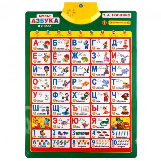 Купить говорящий плакат "Мультазбука Т.А.Ткаченко" в Новосибирске Вы можете в магазине развивающих и настольных игр "Игры Почемучек".