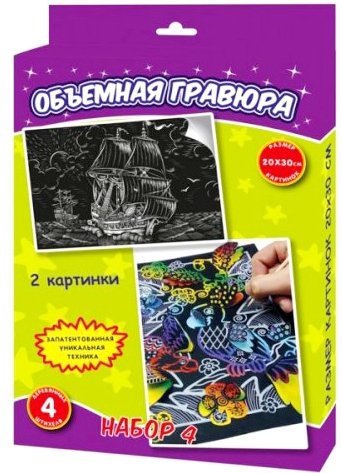 Объёмная гравюра набор 4 Попугай Корабль – это замечательный подарок для юного любителя творчества. Набор серии "Объемная гравюра" специально создан для самых маленьких деток. Работая с гравюрой, малыш превратится в настоящего волшебника, который штрих за штрихом создает веселую и разноцветную картину. Увлекательный процесс надолго займет внимание малыша и подарит массу положительных эмоций.
