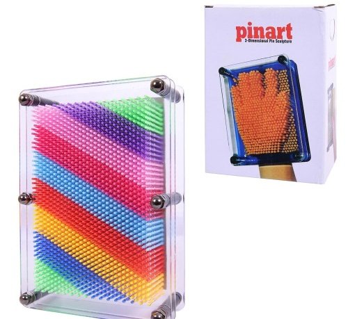 Экспресс скульптор Pinart цветной малый – это прибор, представляющий собой пластину-основание, на которой закреплены пластмассовые стержни (гвоздики), закрытые прозрачной передней панелью. Чтобы создать слепок, опустите устройство горизонтально-прозрачной поверхностью вверх - так все стерженьки должны упасть. Затем расположите экспресс-скульптор вертикально и приложите ладонь или какой-нибудь предмет к ровной поверхности гвоздиков. Ваше творение готово! Объёмный отпечаток получается точным до мелочей.