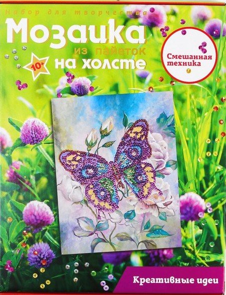 Купить Мозаику из пайеток на холсте Бабочка в Новосибирске Вы можете в магазине развивающих и настольных игр "Игры Почемучек"