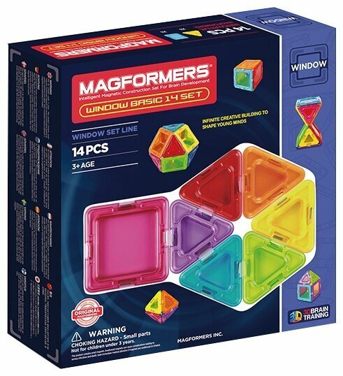 В наборе Вы найдете 14 деталей ярких цветов в классической гамме Магформерс. В каждой детали — веселое окошко из прозрачного цветного пластика. Как и все элементы Магформерс, детали линейки Magformers Window Basic изготовлены из прочного материала, отвечающего всем современным стандартам качества в игрушечной индустрии.