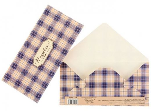 Конверт для денег Поздравляю клетка – отлично подойдет в качестве атрибута или же непосредственного маленького сувенира. Всем известно, что хороший подарок — это полезный подарок. А деньги уж точно не будут пылиться в дальнем углу шкафа. Их можно преподнести на любое торжество. Подберите для своего подарка оригинальный конверт и скорее дарите близким радость! Изделие изготовлено из плотного картона, поэтому вы можете не беспокоиться за целостность его содержимого.