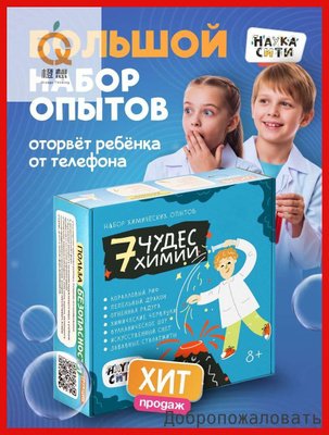 Купить Набор 7 чудес химии и 1 чудо в подарок в Новосибирске Вы можете в магазине настольных и развивающих игр "Игры Почемучек"