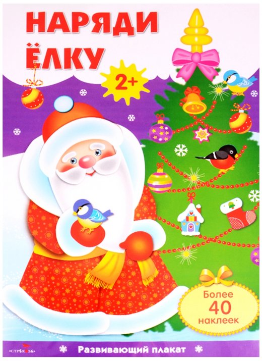 Наряди ёлку. Развивающий новогодний плакат с наклейками на постоянном клее . Прекрасный подарок для развлечения на новогодние праздники - специальная новогодняя ёлка именно для вашего ребенка! Здесь он найдет много наклеек, благодаря которым можно украсить ёлку так, как он захочет: снеговиками, колокольчиками, разноцветными шарами, плюшевыми и другими игрушками! Повесьте постер с наряженной елкой на стену. Выучите стихотворение - игру. И чудесное праздничное настроение гарантировано всей вашей семье!
