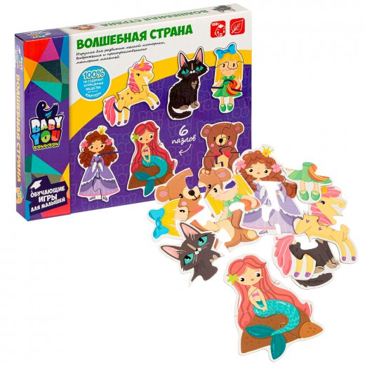 Набор пазлов "ВОЛШЕБНАЯ СТРАНА" серии Baby You от Bondibon подойдут малышам от 1,5 лет. В наборе 6 пазлов в виде персонажей сказок и стихотворений. Пазлы состоят из 2-х, 3-х или 4-х деталей, таким образом сложность выполнения задания увеличивается. Прекрасная игрушка для развития пространственного и логического мышления, памяти и внимания.