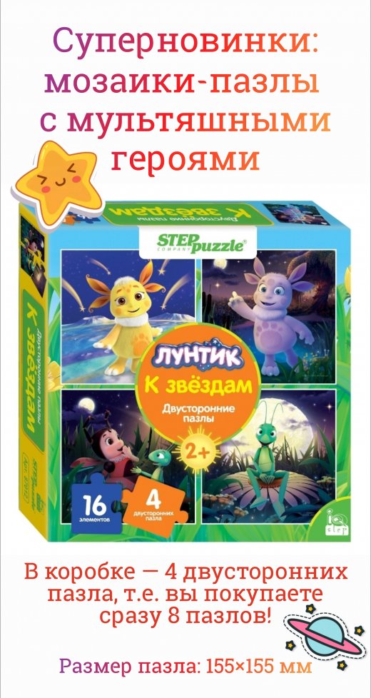 - Пазлы Лунтик К звездам Двусторонние пазлы