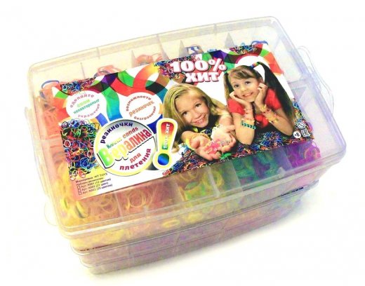 Состав набора: резиночки 25 цветов (более 6000 шт), станок для плетения, крючок 2 шт, S клипсы 24 шт, дополнительные аксессуары.
