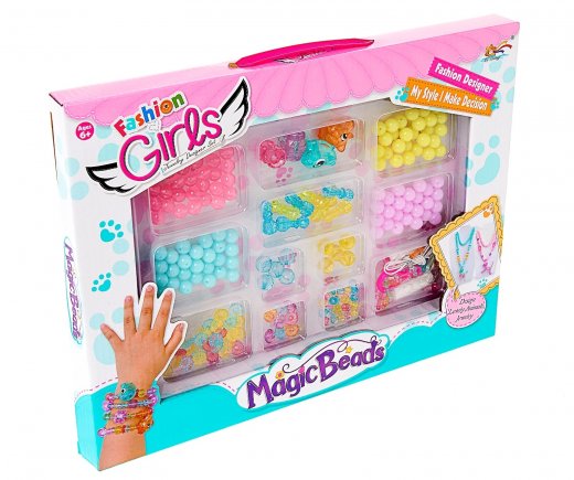 Восхитительный набор включает в себя бусины разных цветов и различной формы. С таким набором можно каждый день создавать новые украшения и демонстрировать подругам. Маленькие модницы могут проявить всю свою фантазию в плетении невероятных браслетов, ожерелий и много другого. Также девочки могут занять свой досуг и весело провести время в компании подруг.