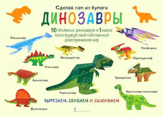 Ваш ребёнок любит динозавров? Ему нравится вырезать и конструировать? Тогда новинка издательства «Русское слово» для вас! Альбом «Динозавры» позволит маленькому любителю этих удивительных животных своими руками (или, возможно, с небольшой помощью взрослых) сделать из плотной бумаги 10 объёмных фигурок. Пошаговые иллюстрированные инструкции максимально упростят творческий процесс.