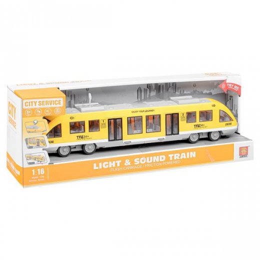 • Размеры игрушки: 45х5.5х10 см. • Инерционный механизм. • Открываются двери. • При нажатии кнопок на крыше, включаются эффекты: - звуки движения. - подсветка салона. • Свет и звук работают от 3-х батареек "AG13" (входят в комплект для демонстрации) • Материал: пластик. • Соответствует требованиям безопасности и стандартам качества продукции. • Для детей от 3-х лет.
