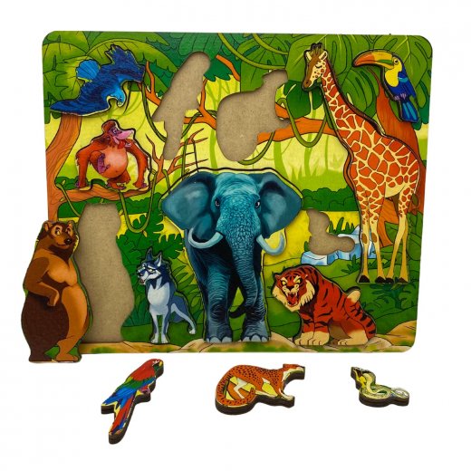 Купить Пазл рамка Кто живет в джунглях? 11 дет в Новосибирске Вы можете в магазине развивающих и настольных игр "Игры Почемучек".