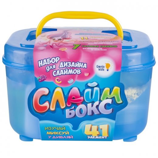 Большой набор для дизайна слаймов Genio Kids Слайм бокс - отличный подарок для любителей экспериментов. Изучай! Миксуй! Удивляй! Набор состоит из готовых основ (слаймы 2-ух видов, песок, легкий пластилин), ингредиентов для самостоятельного создания слаймов (основа + активатор), огромного количества наполнителей (блестки, красители, ароматизаторов, различные посыпки) и вспомогательных инструментов.